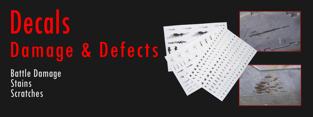 Currently in development. A range of decals aimed at making it easy to add bullet holes, tears, scratches and other defects to your models.