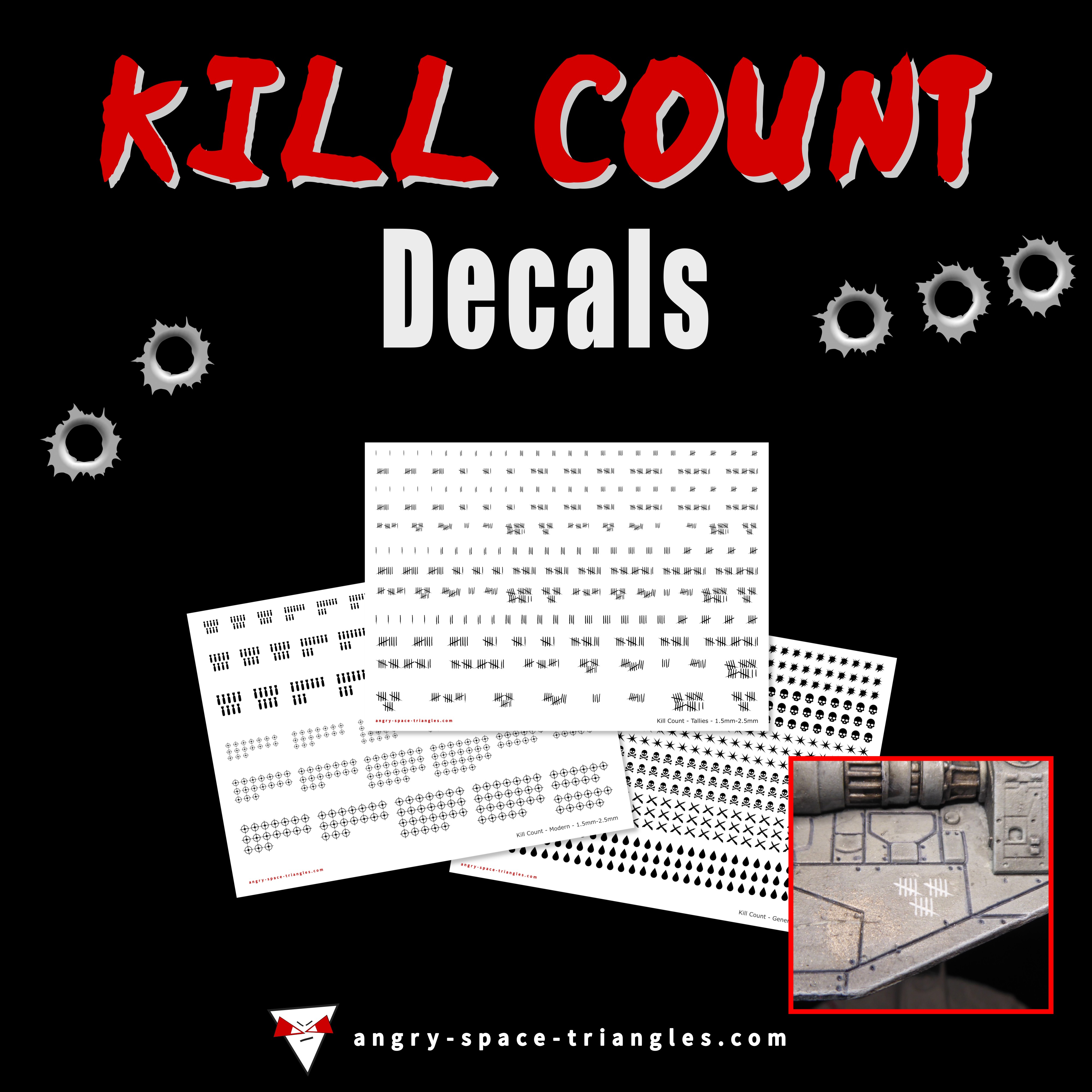 Decals depicting icons and graphics that show how many enemy the unit has dispatched.