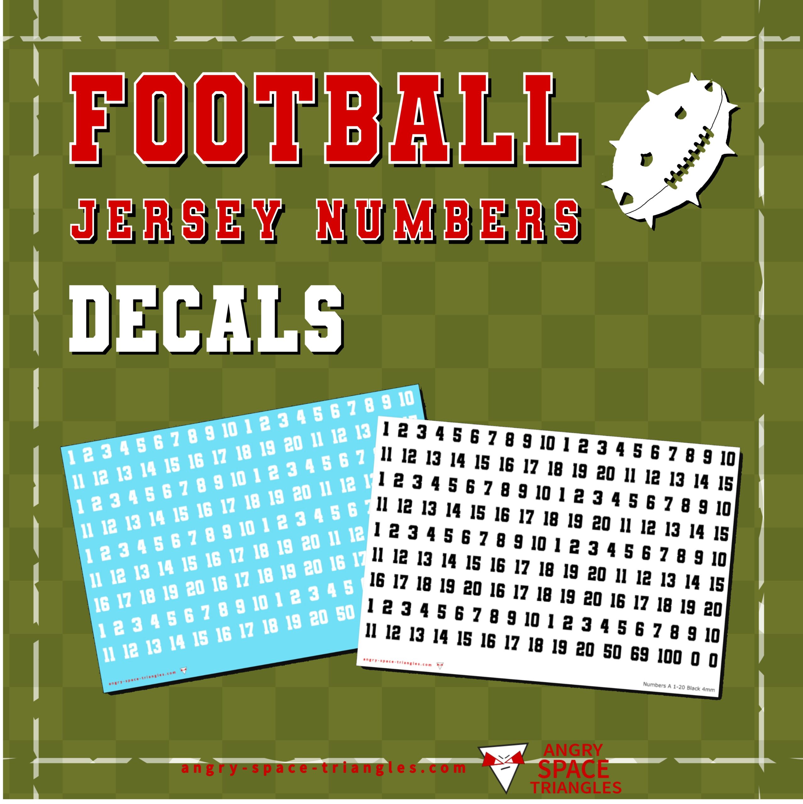 Numbers for football jerseys. Ideal for Subbuteo, Bloodblowl etc